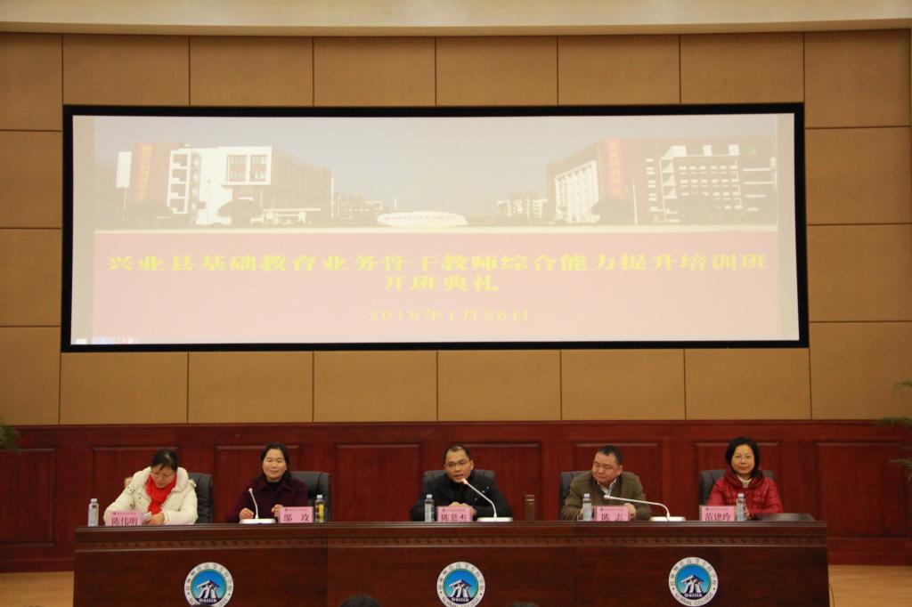 我校受玉林市兴业县教育局的委托,为兴业县举办基础教育骨干教师综合能力提升培训班, 2018年1月25日至2月4日顺利地完成了第一期与第二期的培训任务,共培训教师共计476人,其中中学教师198人,小学教师278人。陈幕杰校长参加第一期开班典礼并致辞,谢明副校长参加第二期开班典礼并致辞。