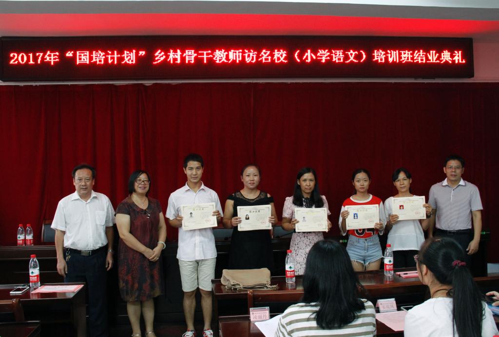 经过7天的紧张培训,9月29日我校承办的2017年“国培计划”乡村骨干教师访名校(小学语文)研修项目圆满完成,结业典礼在信义校区视频会议室举行,中文系负责人、首席专家、管理人员及全体学员参加了结业典礼。