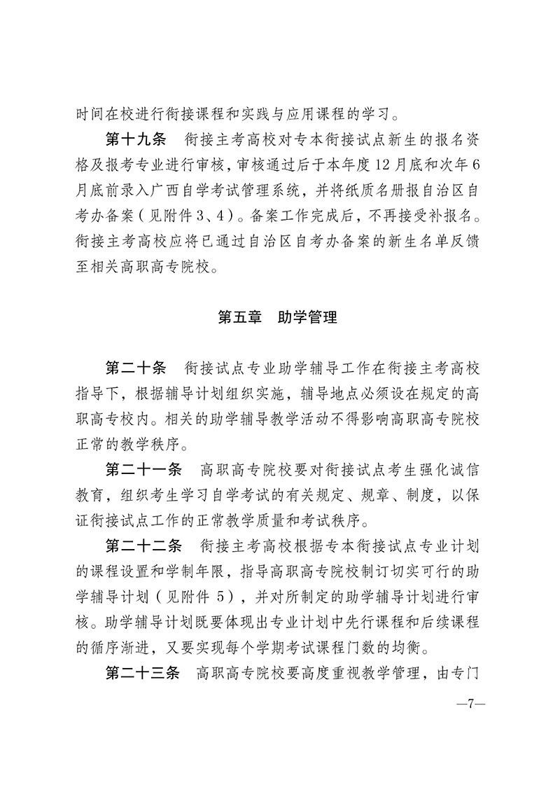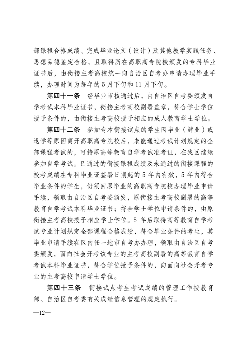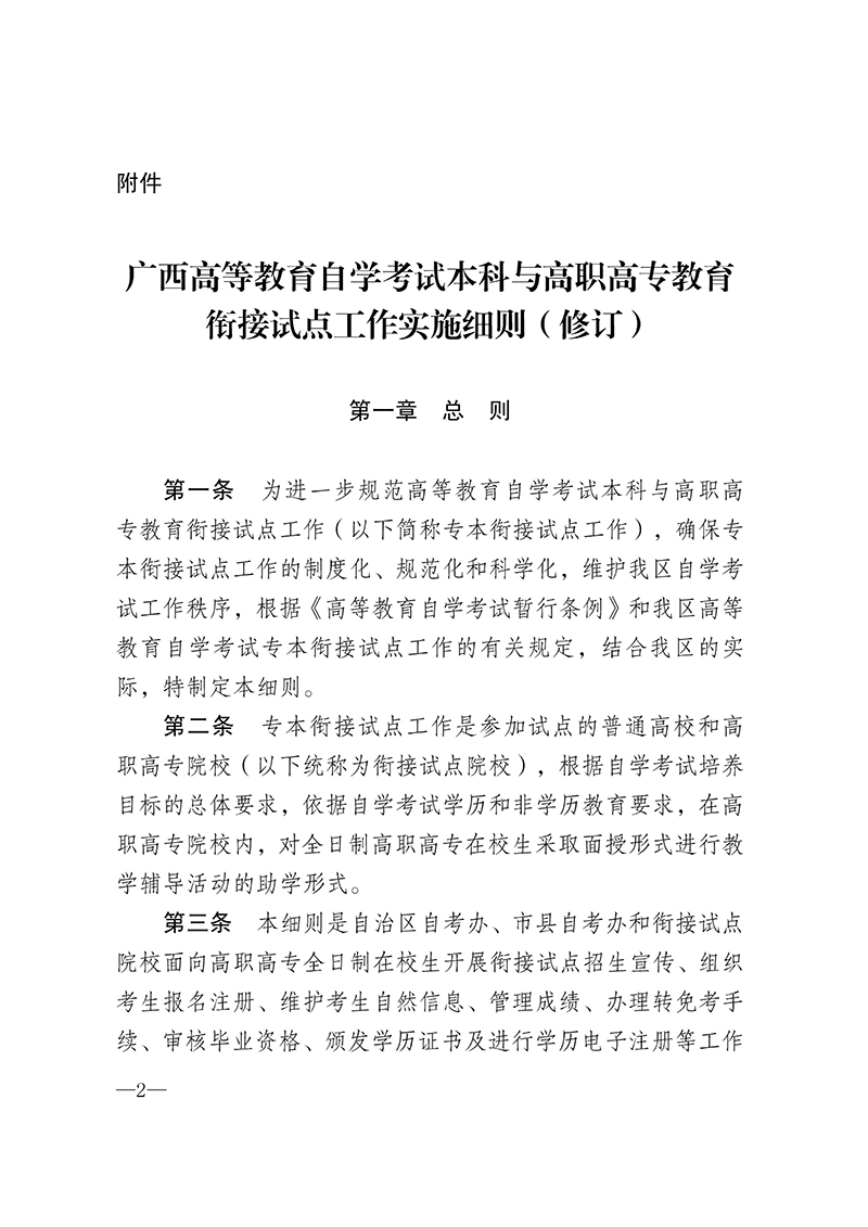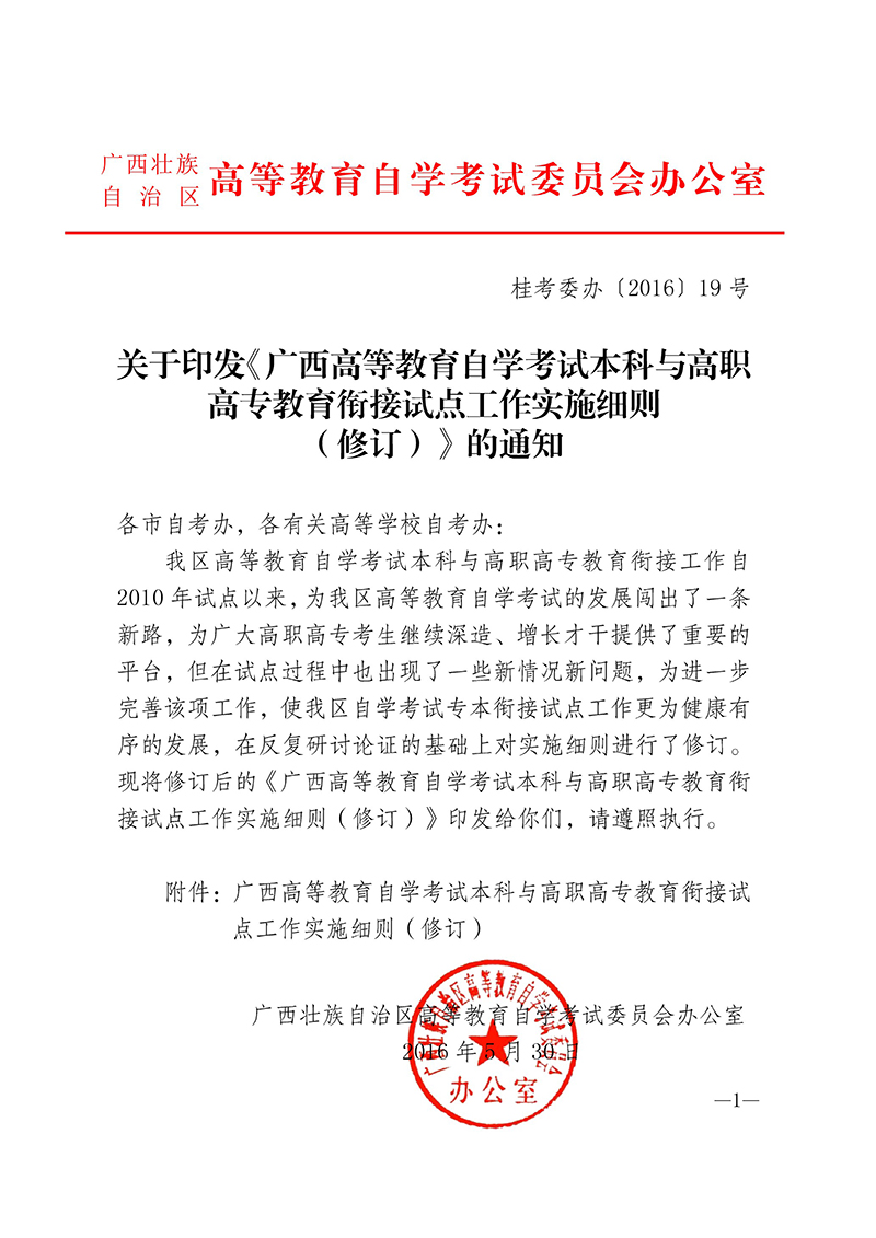 关于印发《广西高等教育自学考试本科与高职高专教育衔接试点工作实施细则(修订)》的通知
