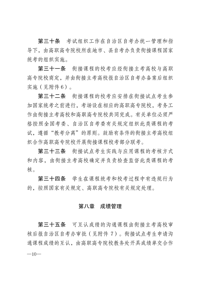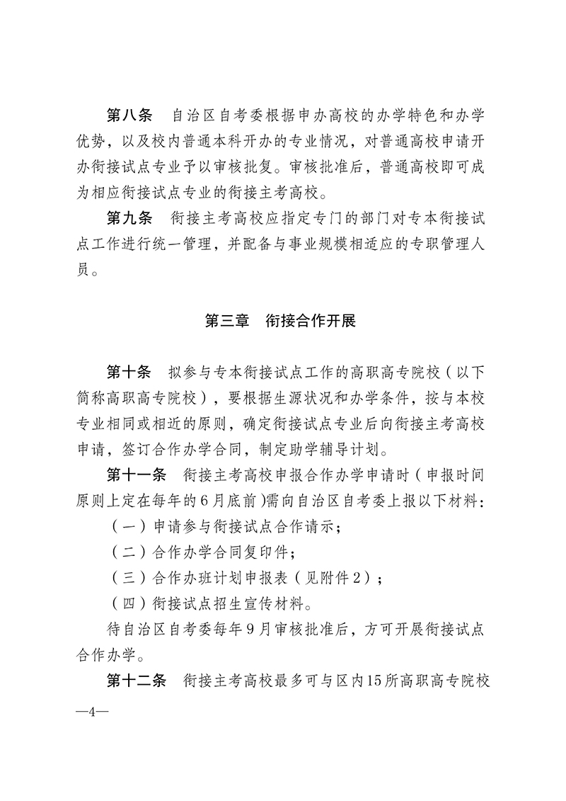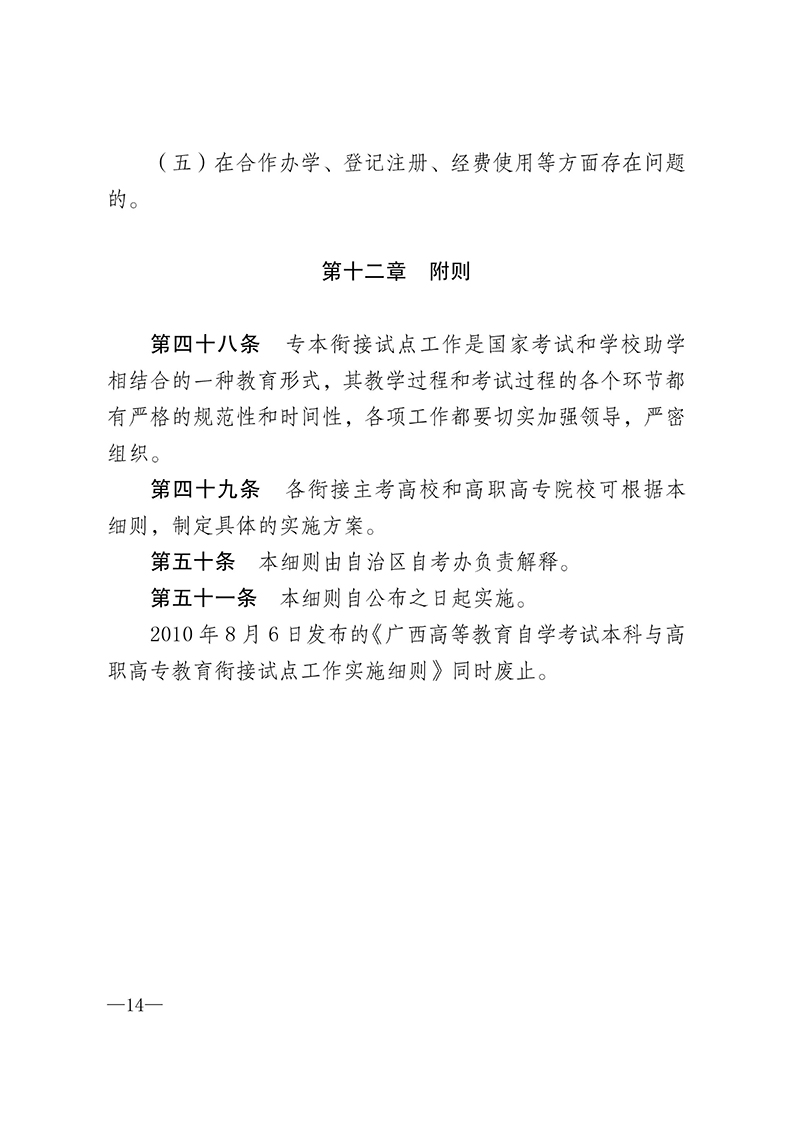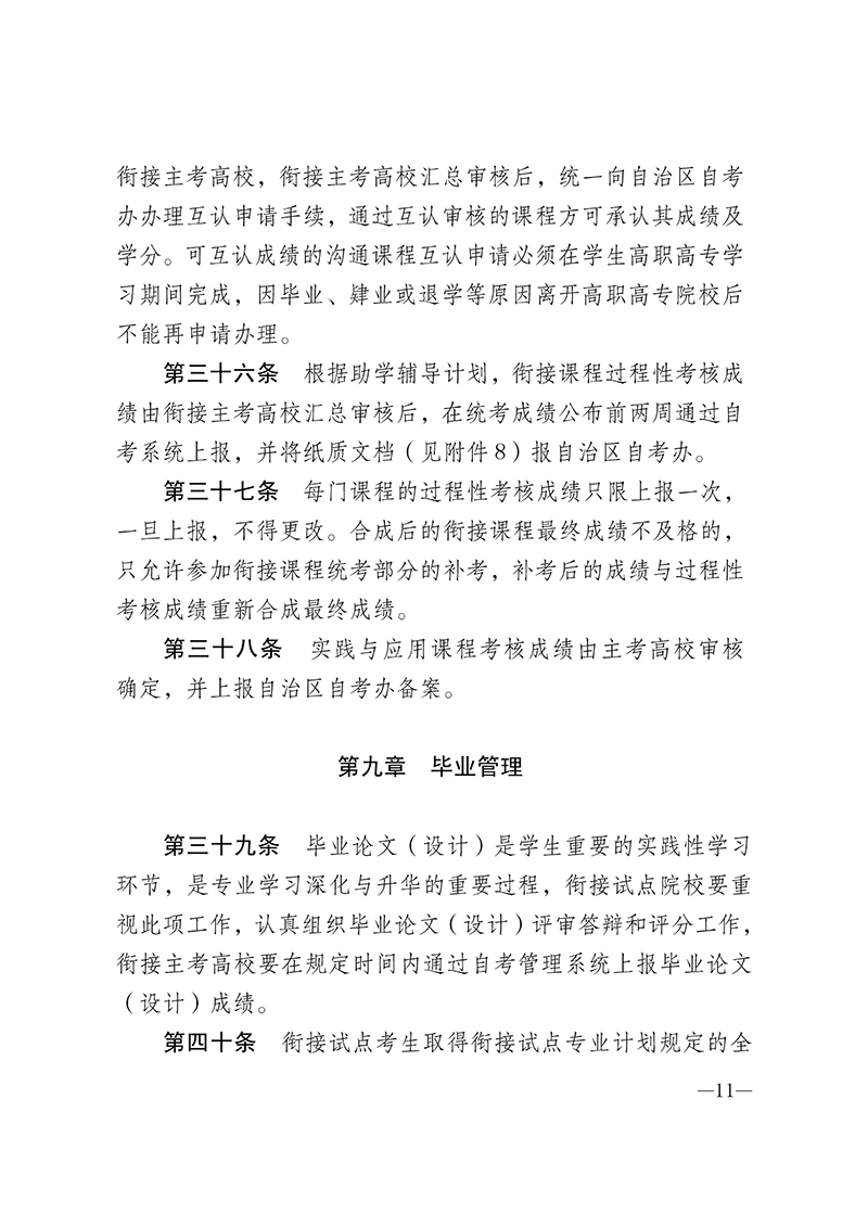 关于印发《广西高等教育自学考试本科与高职高专教育衔接试点工作实施细则(修订)》的通知